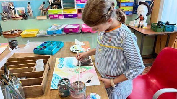 "Un espacio con magia, donde grandes y pequeños comparten su pasión por la pintura. La profe, respetuosa con el aprendizaje que cada alumno va experimentando, dejando fluir la pintura…".